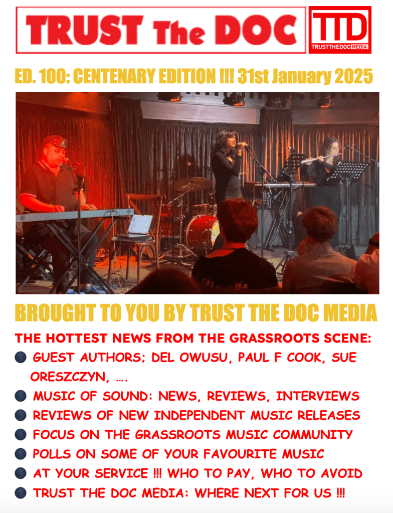 The next edition of Trust The Doc is our 100th (centenary) and it will be a bumper issue full of features including guest articles by some of our esteemed friends from across the Independent Music Sector and a lot of additional features including a focus on 20 grassroots music acts. It will be published on 31st January 2025.